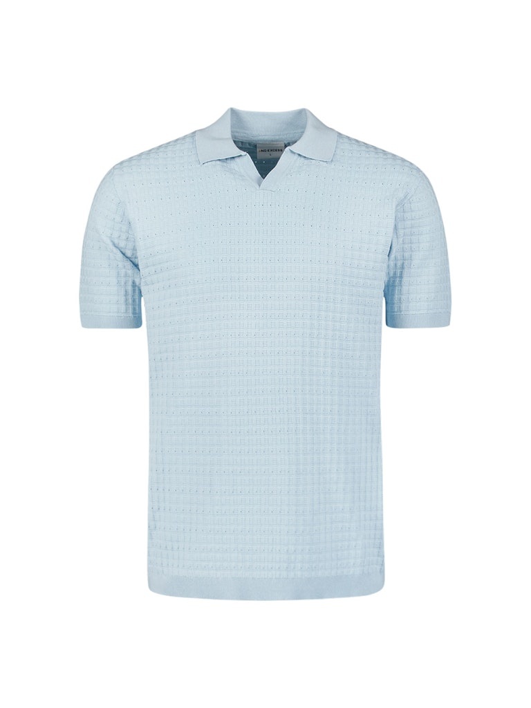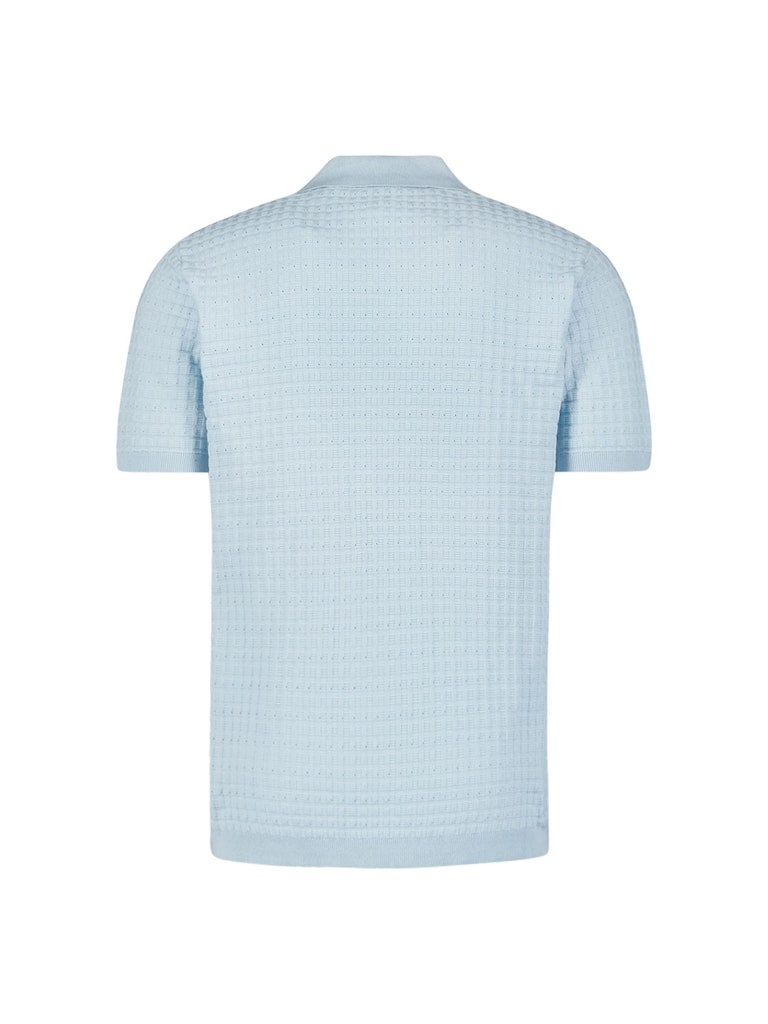Deze polo met korte mouwen heeft een verfijnde jacquardstructuur en een stijlvolle V-hals. De ademende stof zorgt voor optimaal comfort, ideaal voor warme dagen. Een subtiele, maar elegante toevoeging aan elke garderobe.