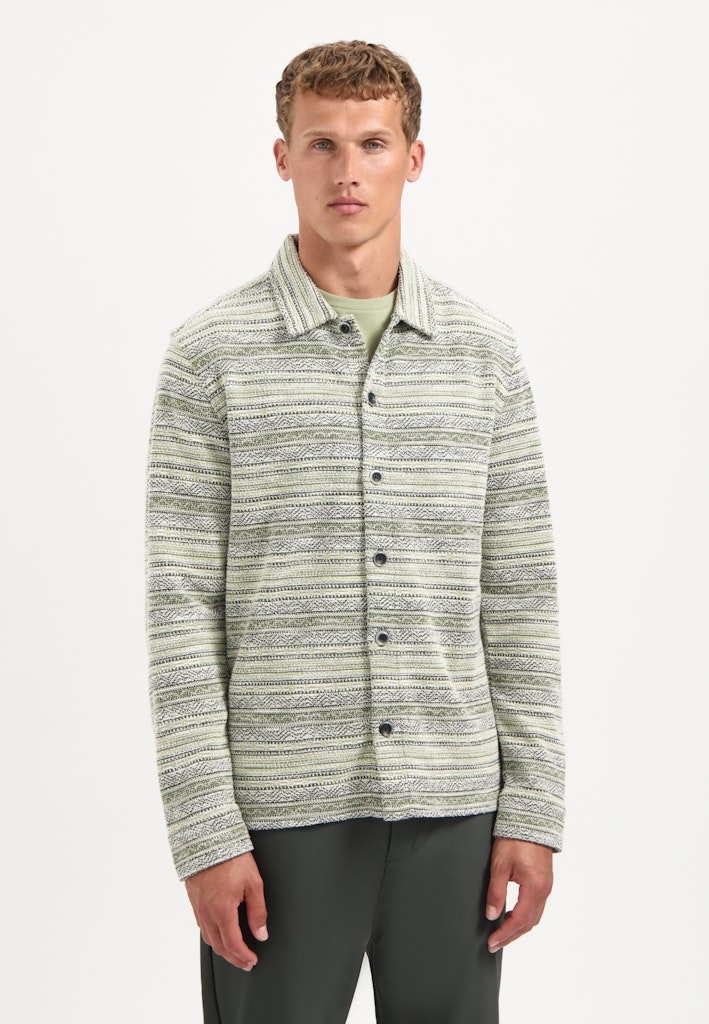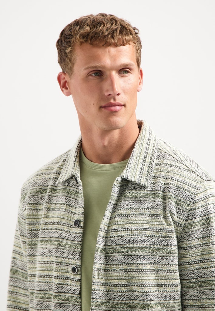 Statement piece nodig? Dit gebreide overshirt combineert comfort met karakter door het unieke jacquardpatroon. Draag ’m open over een basic tee of dichtgeknoopt op een jeans voor een relaxte laagjeslook.