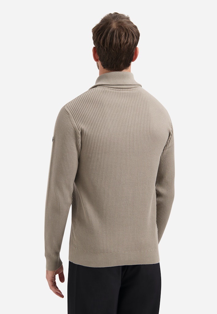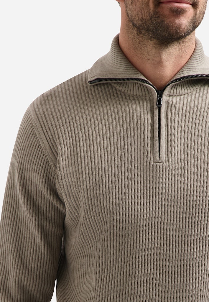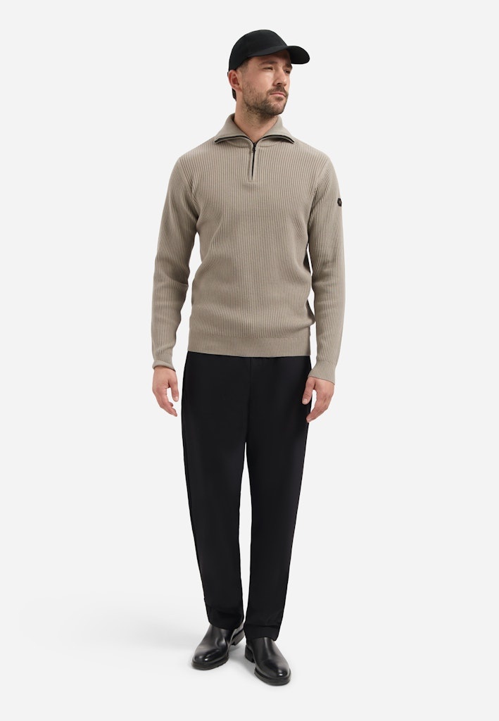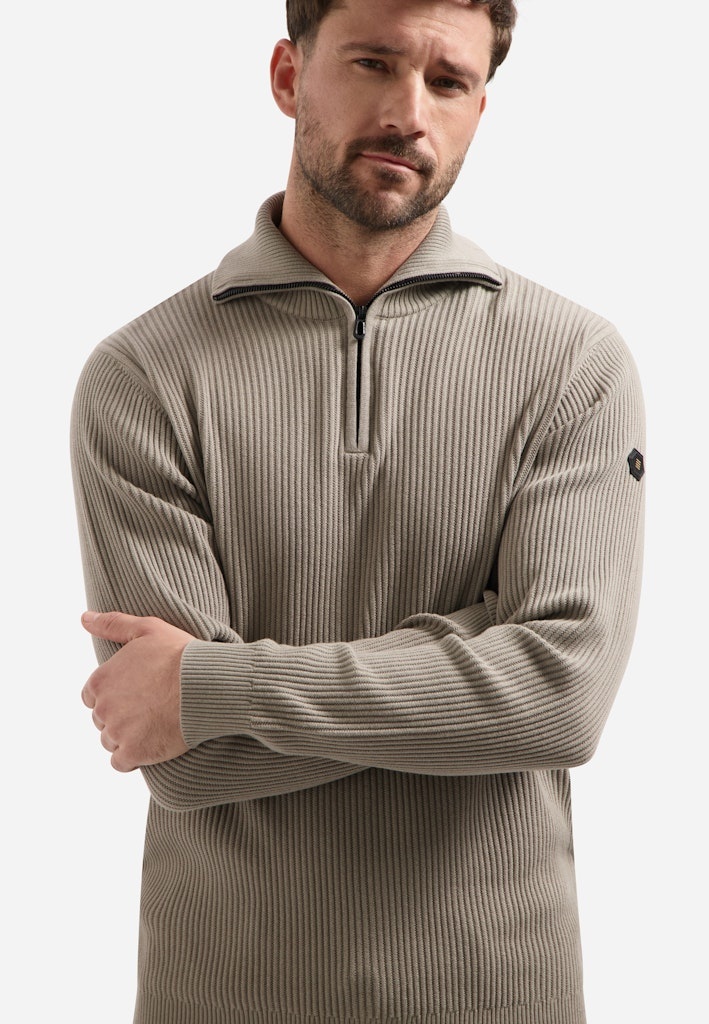 Comfort en klasse komen samen in deze grofgebreide trui met hoge kraag en rits. Perfect voor frisse dagen en makkelijk te combineren met een jeans, chino óf een blouse eronder voor een verzorgde look.