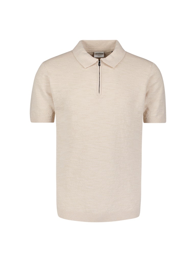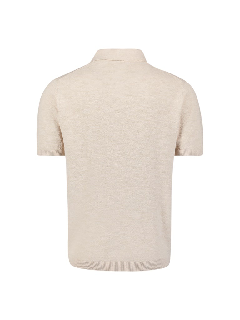 Polo met korte mouwen in een zachte frottéstructuur en cleane kraag met rits. Het luchtige breisel maakt hem ideaal voor warme dagen, zowel met chino als short.