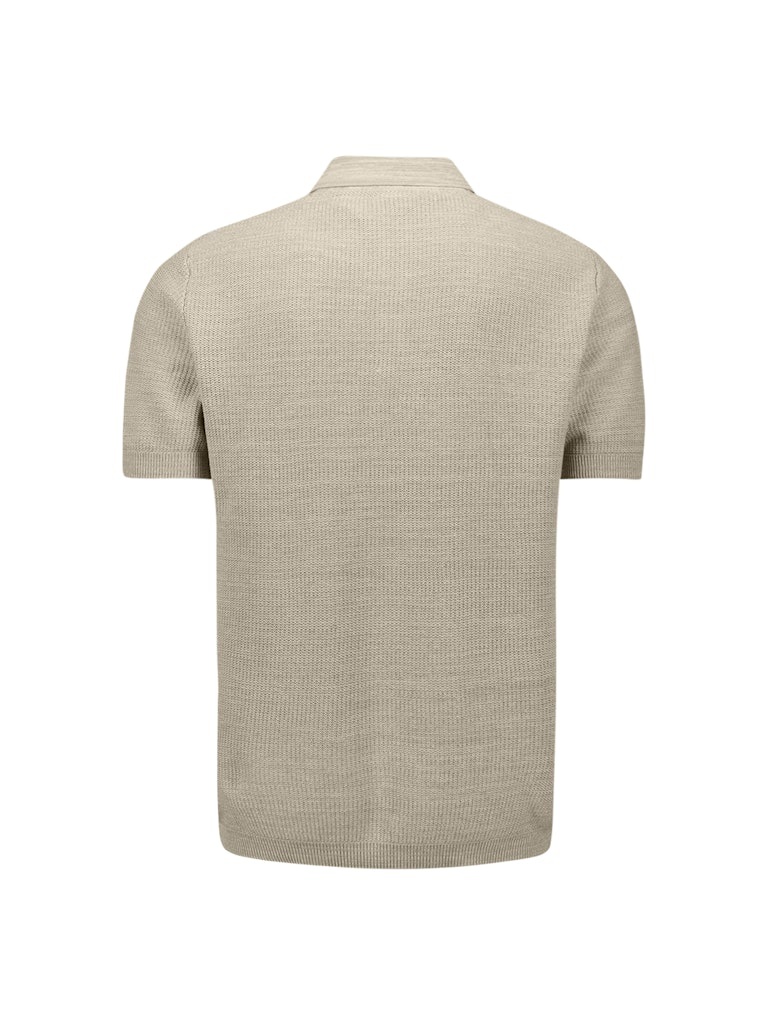 Korte-mouw polo in een tweekleurig gemêleerd breisel met nette knoopsluiting. Luchtig, zacht en perfect voor zomerse outfits.