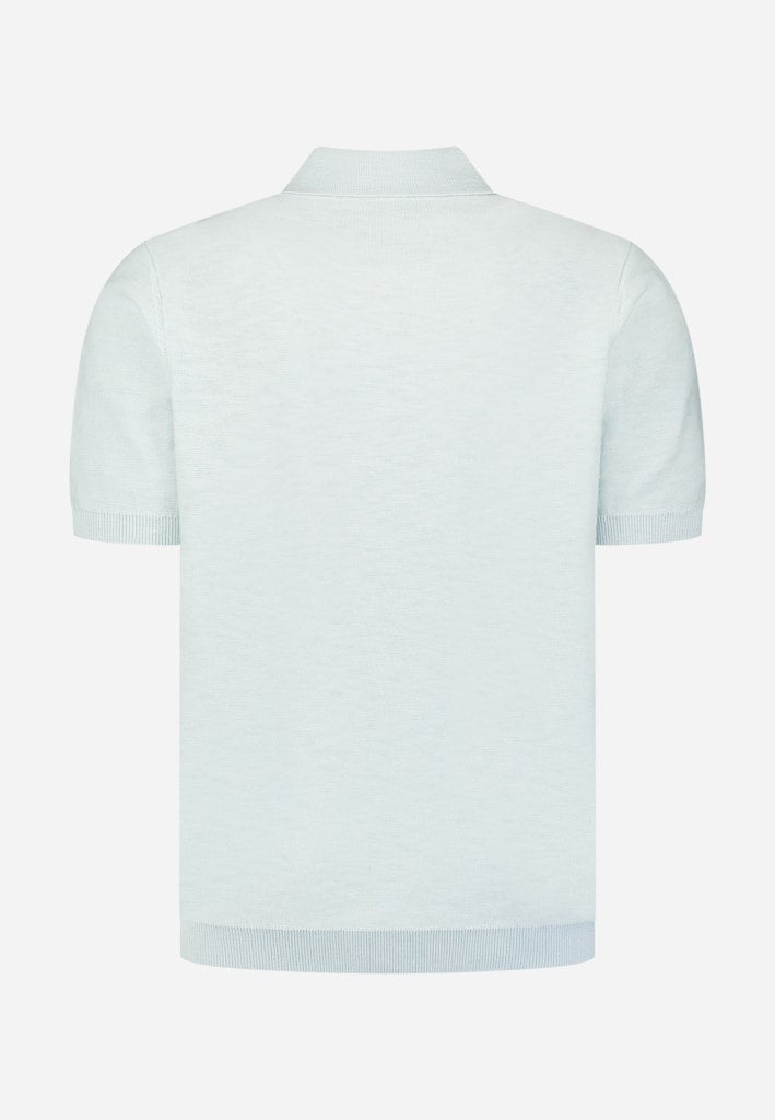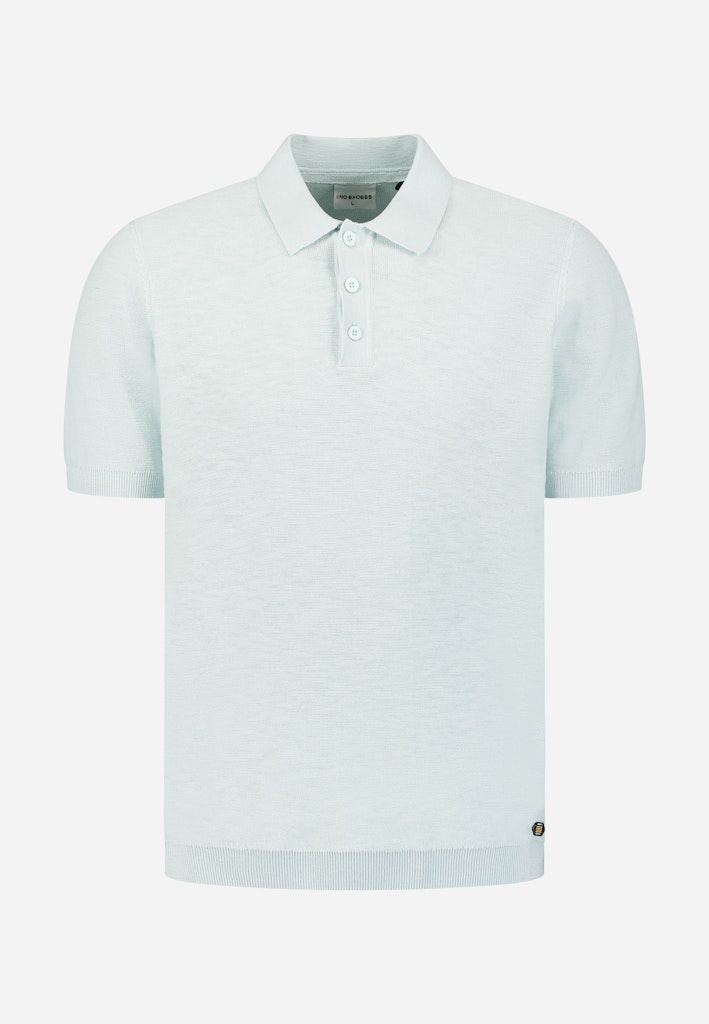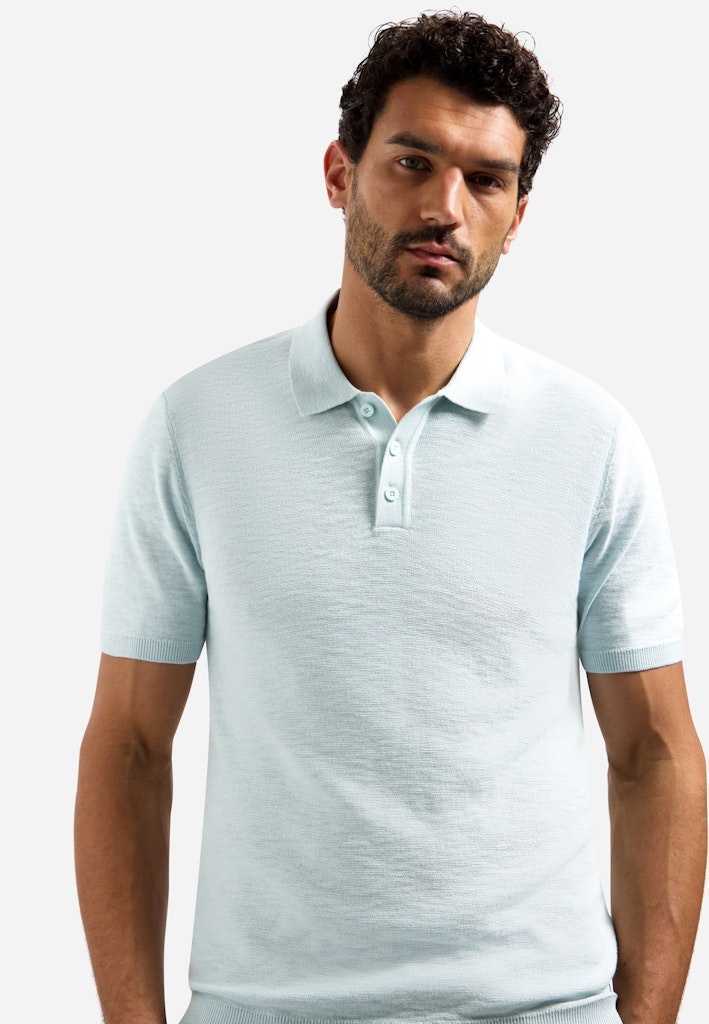 Luchtige gebreide polo met slubstructuur en klassieke knoopsluiting. De ademende stof zorgt voor een moderne, verzorgde uitstraling — perfect voor warme dagen.