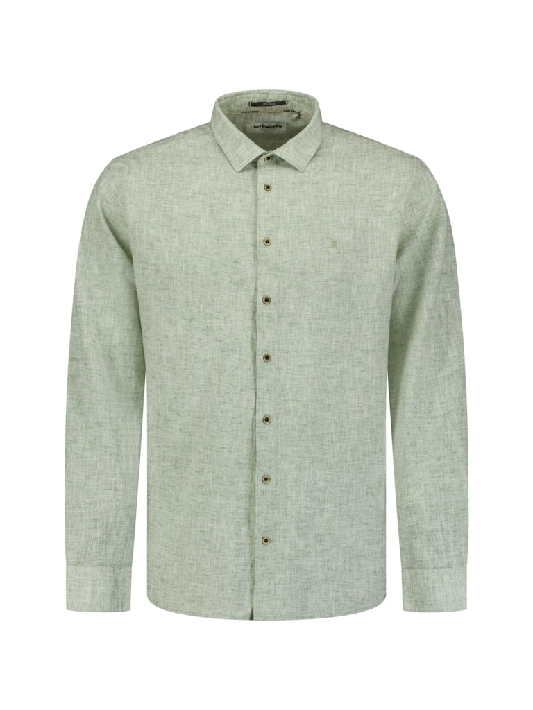 Licht overhemd in linnenblend met subtiele two-tone weving voor extra diepte. Ademend en comfortabel, ideaal voor zomerse dagen met een verzorgde look.