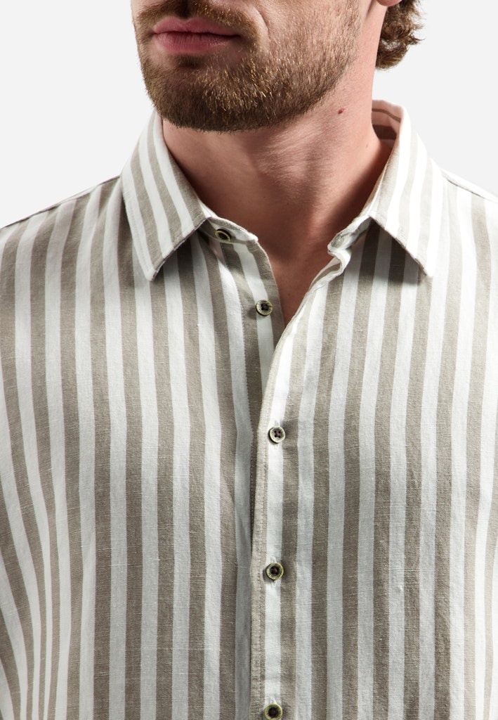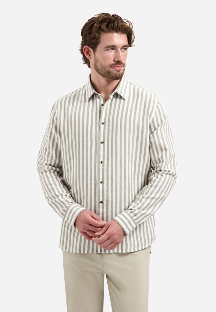Verfijnd overhemd van linnen-katoen met verticale strepen voor een frisse, moderne uitstraling. Geschikt voor zowel werk als vrije tijd.