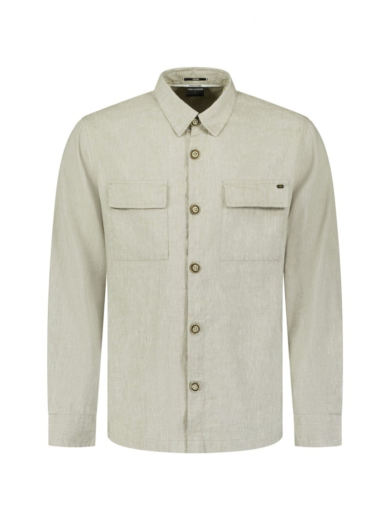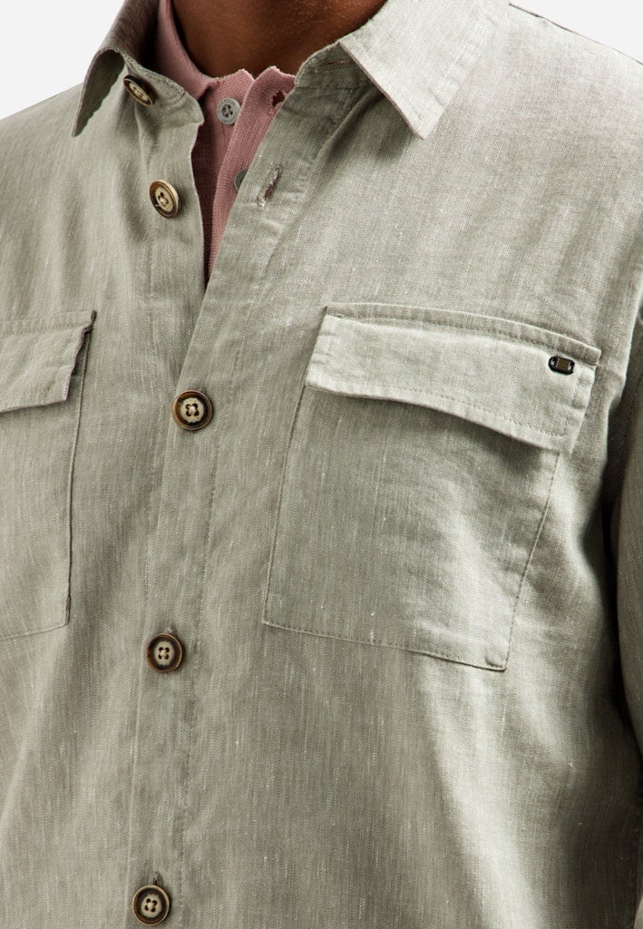 Licht overshirt in een gemêleerde linnen-katoenmix met volledige knoopsluiting. De ademende stof en cleane afwerking maken dit een ideaal item om te layeren in het voorjaar en de zomer.