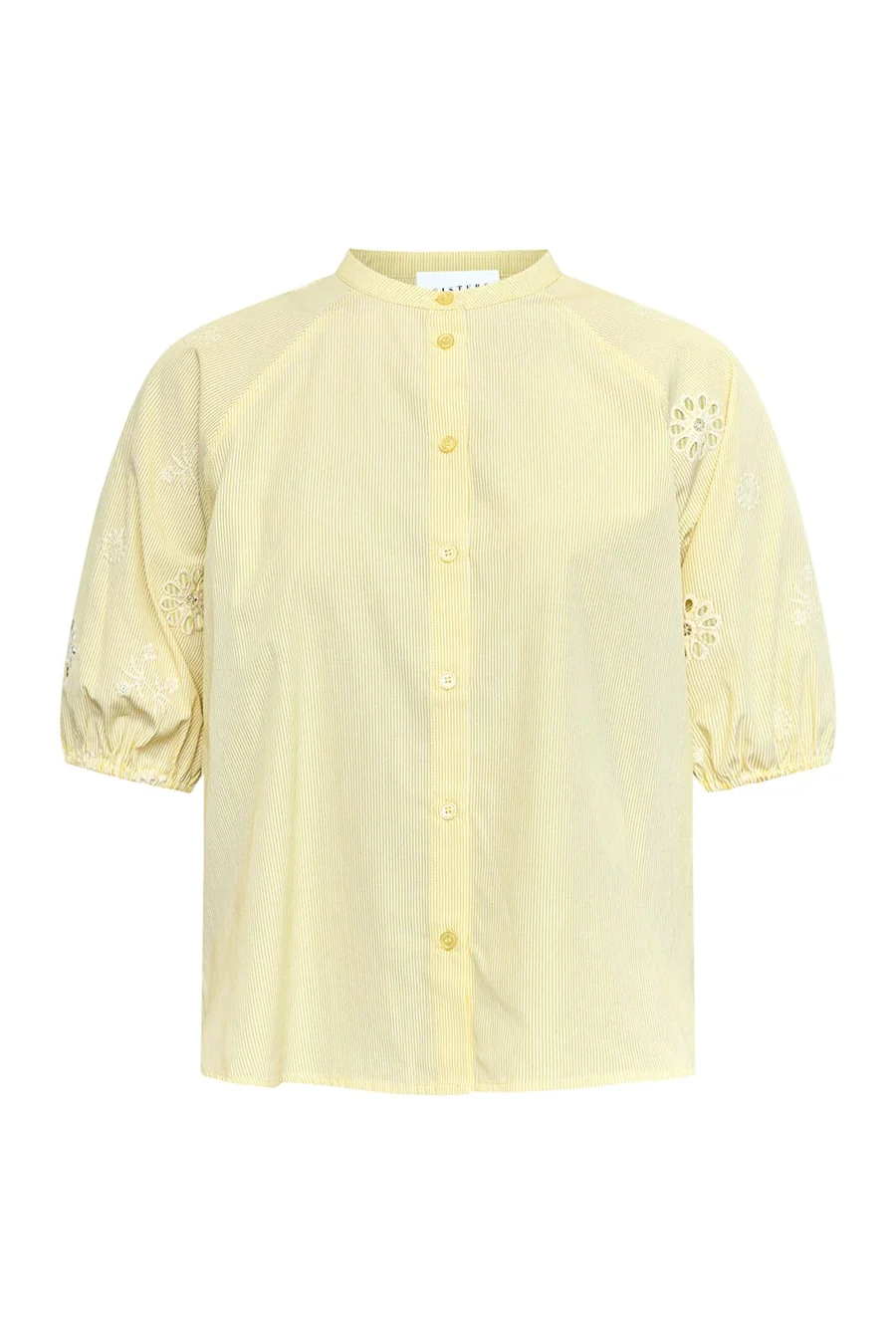 Gestreept shirt van Sisters Point in het geel. Het shirt heeft fijne verticale strepen en is geschikt voor zowel ontspannen doordeweekse dagen als feestelijke gelegenheden.