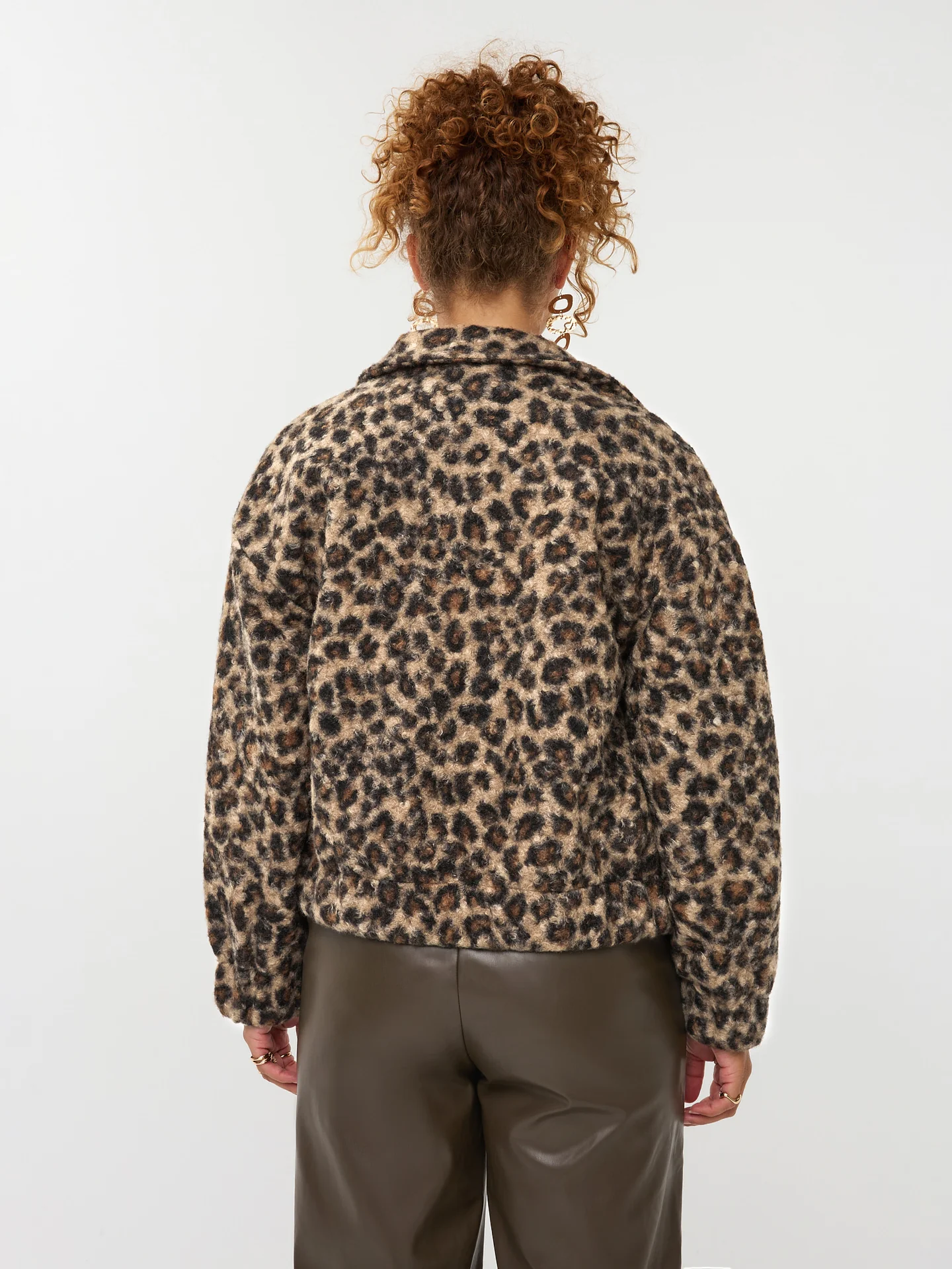 Jacket Rory is een echte eyecatcher die warmte en stijl combineert. Dit jasje heeft een rechte, iets boxy pasvorm en is uitgevoerd in een zachte teddy stof met een trendy luipaardprint. De doorlopende ritssluiting en opstaande kraag geven het item een sportieve touch, terwijl de elastische boorden zorgen voor extra comfort. Perfect om je outfit net dat beetje extra te geven. De totale lengte van jacket Rory is 58 cm met een mouwlengte van 52 cm bij een maat S.