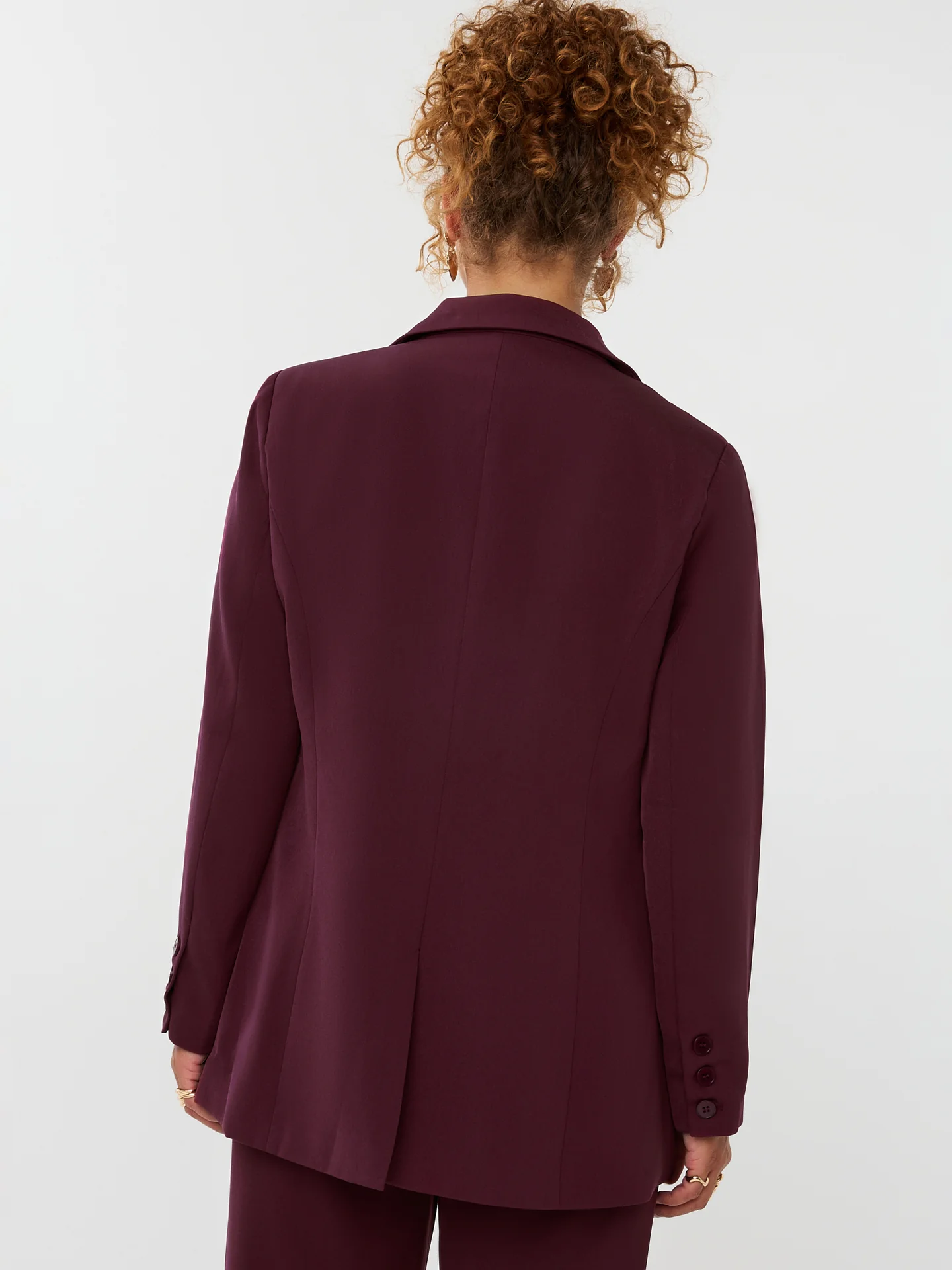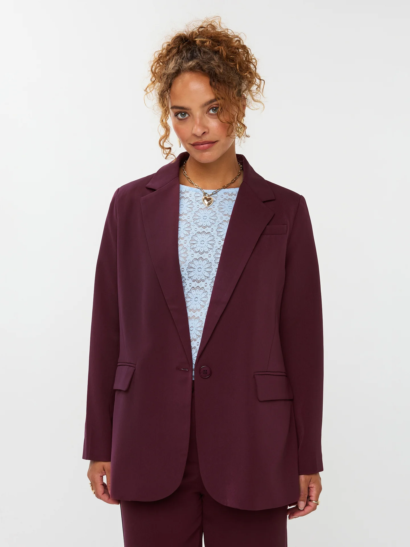 Blazer Maisie is een stoere, vrouwelijke, oversized blazer. De blazer heeft paspelzakken met klep aan de voorzijde en sluit met een enkele knoopsluiting. De blazer is gemaakt van een rijke stof bestaande uit polyester en rayon en is volledig gevoerd. Aan de achterzijde van de blazer zit een kleine split. De lengtemaat van Blazer Maisie is 75 cm bij een maat S. De mouwlengte is 60 cm.