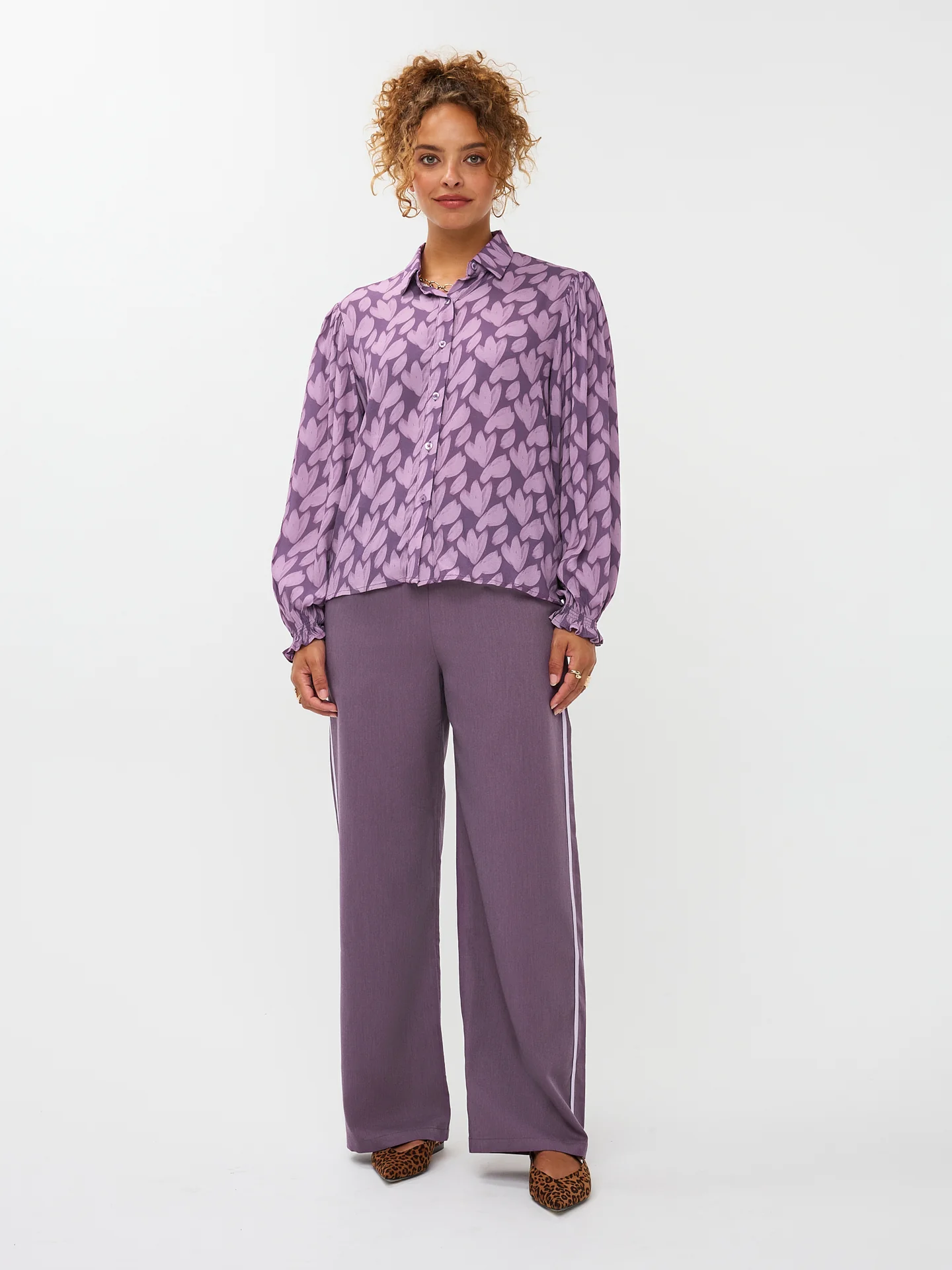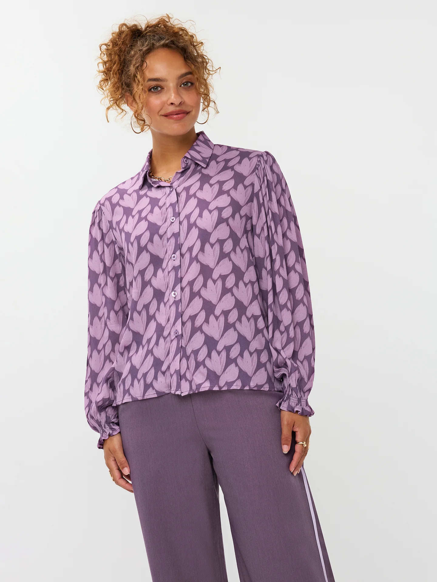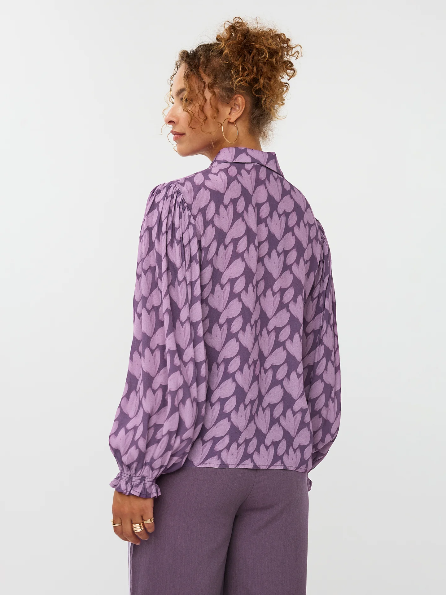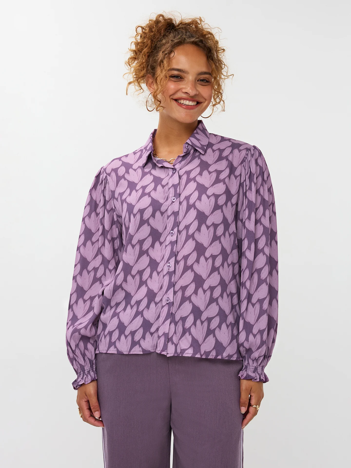 Blouse Alyssa brengt kleur en elegantie samen in één stijlvol item. Deze blouse heeft een losse, comfortabele pasvorm met een doorlopende knoopsluiting aan de voorkant. De lange mouwen zijn licht gepoft en afgewerkt met elastische ruches aan de manchetten, wat zorgt voor een speelse en vrouwelijke touch. De print geeft de blouse een frisse en trendy uitstraling, perfect voor iedere gelegenheid. De totale lengte van blouse Alyssa is 61 cm met een mouwlengte van 61 cm bij een maat S.