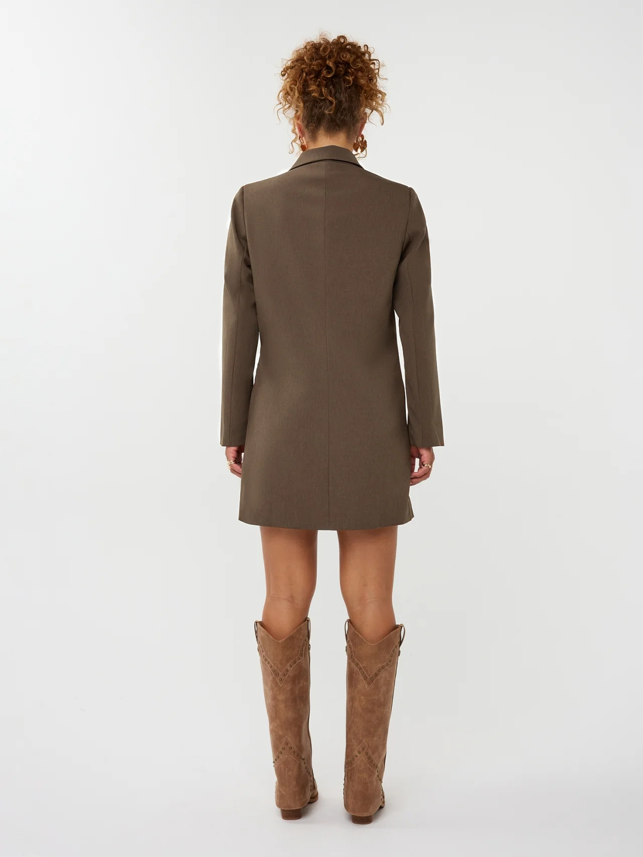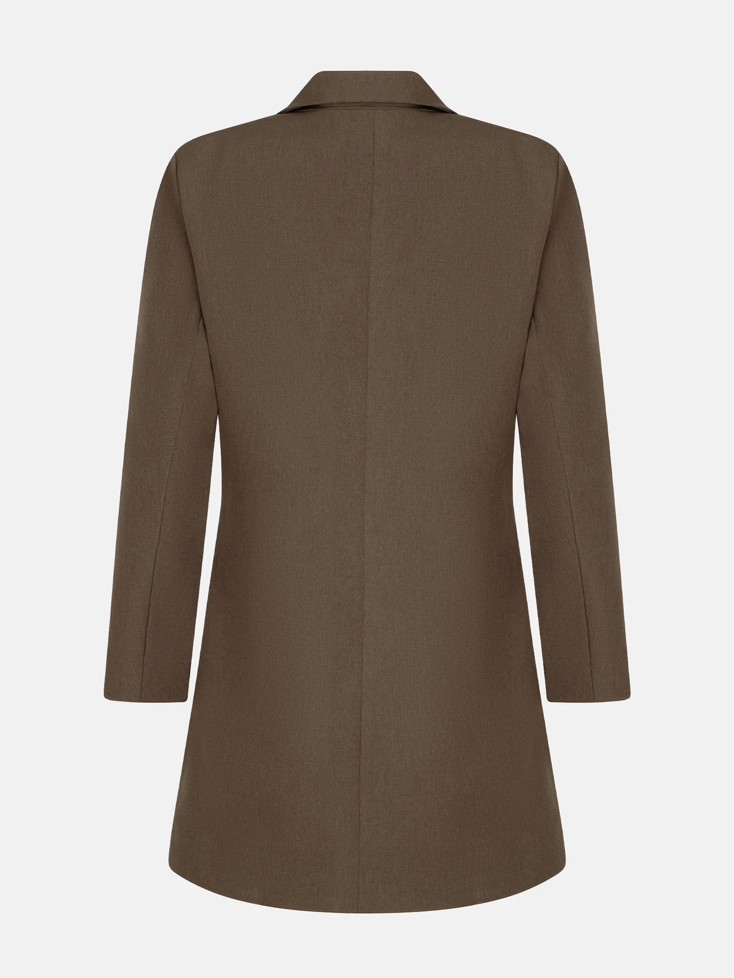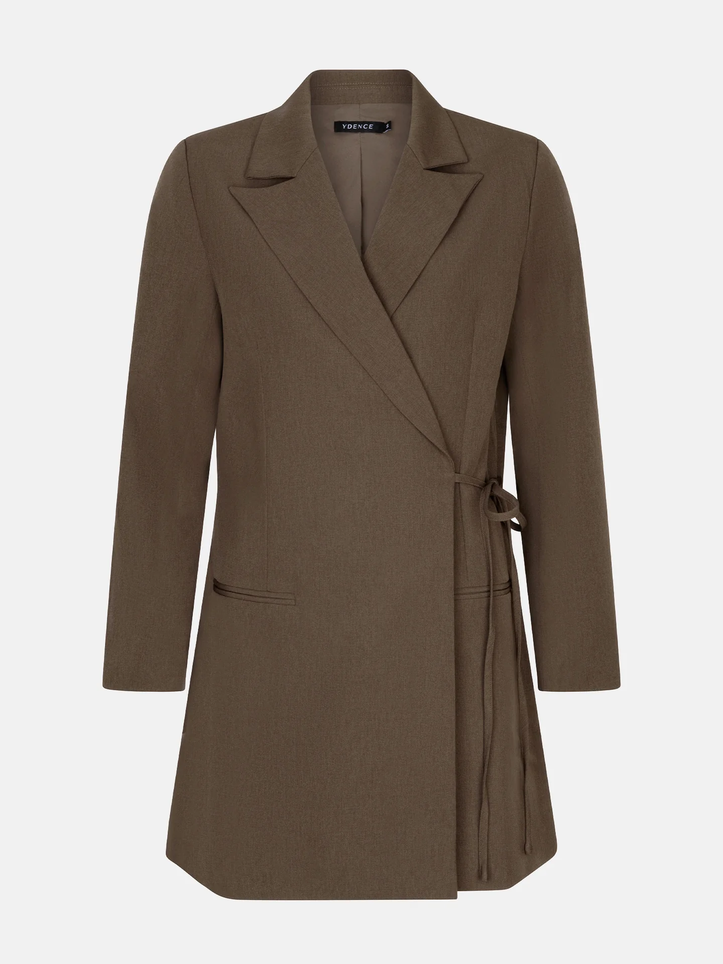 Dress April is een elegante blazerjurk met lange mouwen en een klassieke reverskraag. De jurk sluit als wikkeljurk met 2 knopen aan de binnenkant en een strik in de rechterzij als detail. De totale lengte van de blazerjurk is 88 cm en de mouwlengte is 61 cm bij een maat S.