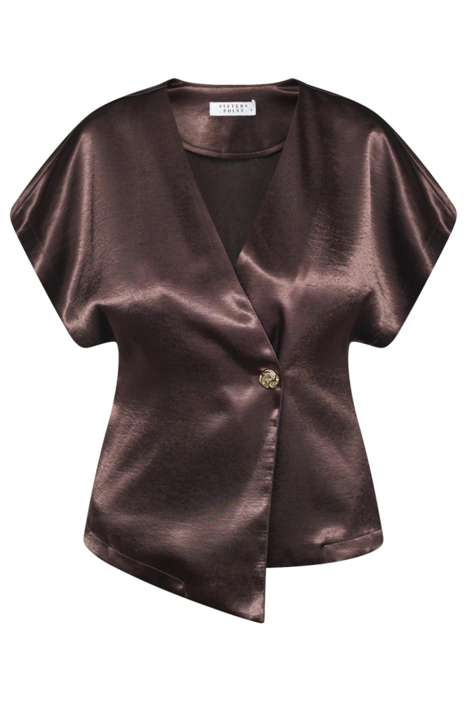 Deze bruine blouse van SisterS point voegt een vleugje elegantie toe aan je wintergarderobe. Gemaakt van 100% polyester, straalt de blouse een subtiele glans uit, waardoor hij een chique uitstraling heeft. De regular fit en kap mouwen zorgen voor een comfortabele pasvorm die perfect is voor elke casual gelegenheid. Met een V-hals en een enkele knoopsluiting is deze blouse een veelzijdig item dat gemakkelijk te stylen is. Of je nu een dagje naar kantoor gaat of een informeel diner hebt, deze glanzende blouse is een uitstekende keuze. De normale lengte maakt hem ideaal om te combineren met een mooie broek of rok. Dankzij het casual ontwerp pas je de blouse moeiteloos aan naar je persoonlijke stijl. Deze blouse van SisterS point is een veelzijdig item dat je met veel plezier zult dragen, ongeacht de gelegenheid.