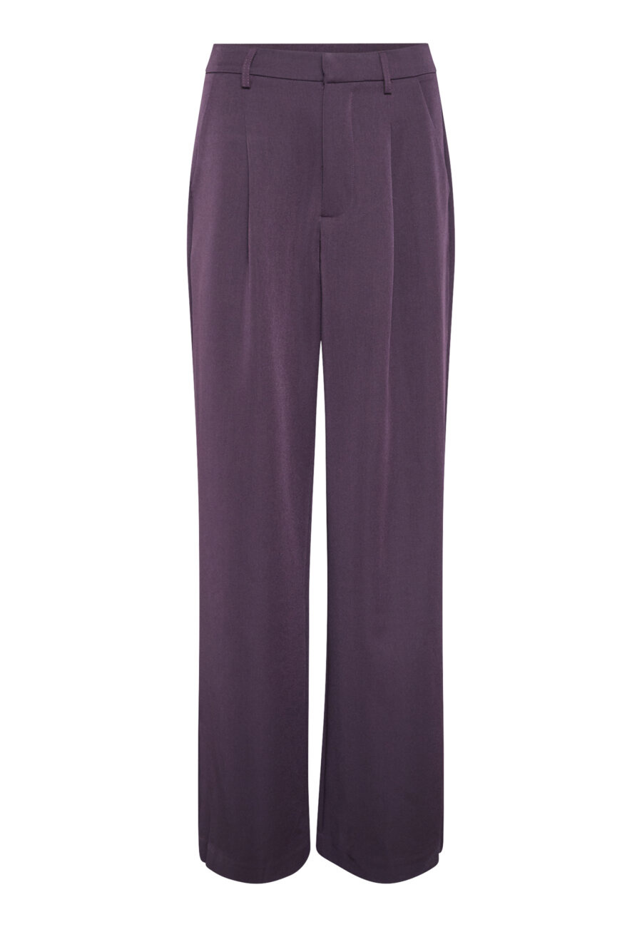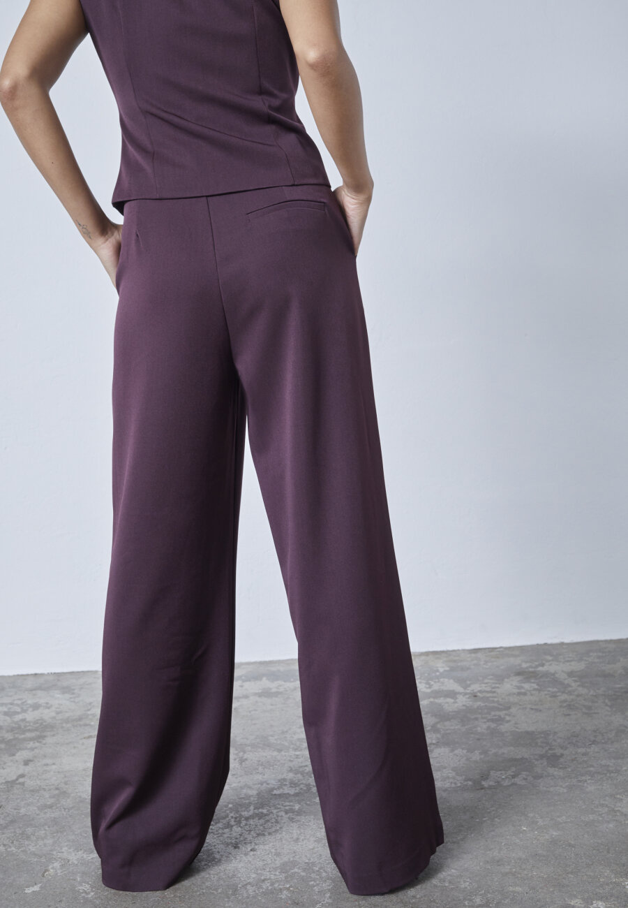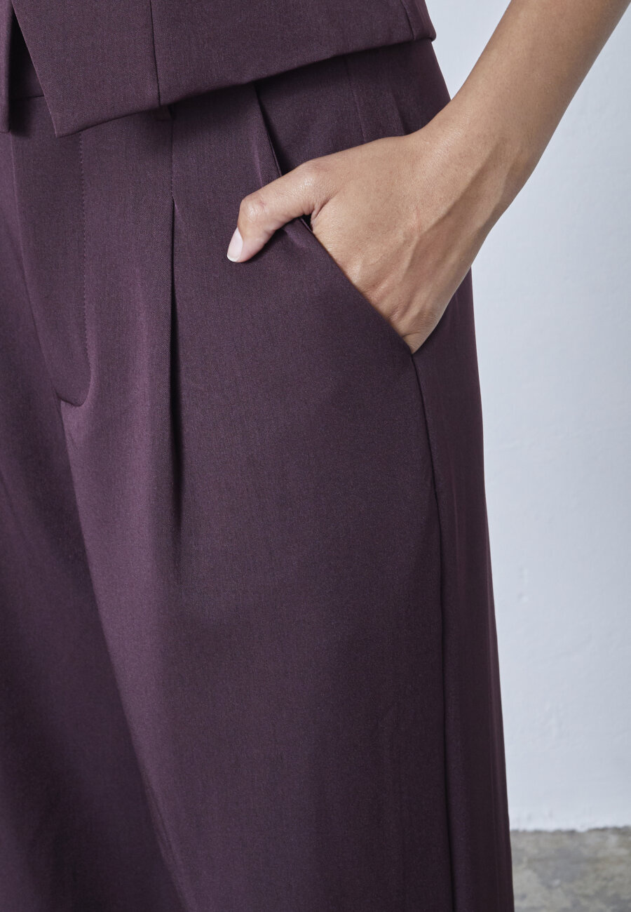 GREAT-PA2 is a loose trouser with wide legs and a clean cut. It features a comfortable fit with front pleats and practical side pockets, perfect for an elegant yet relaxed look. The model is wearing size S and is 171 cm tall.