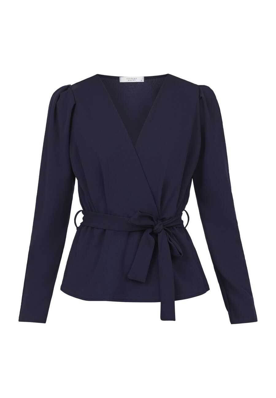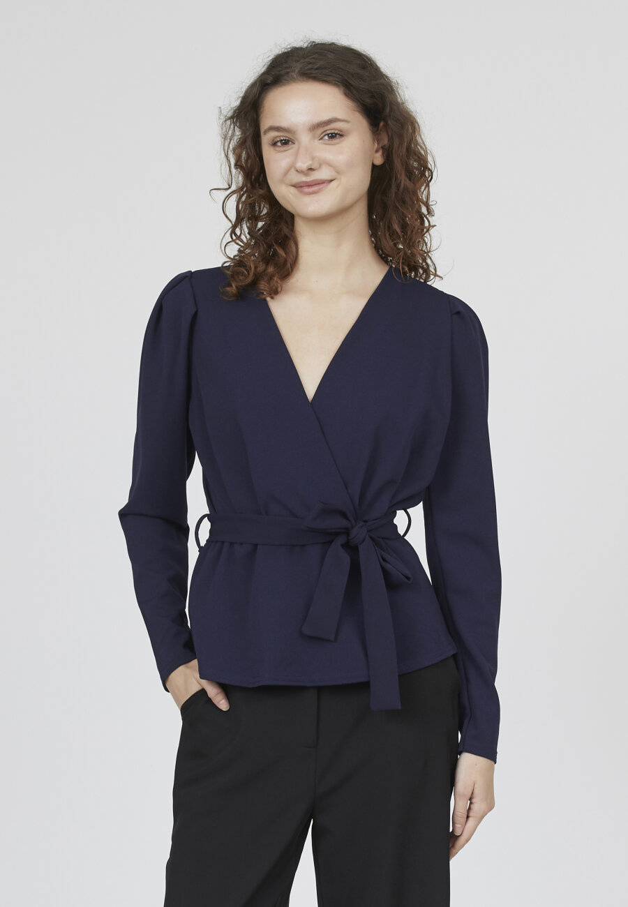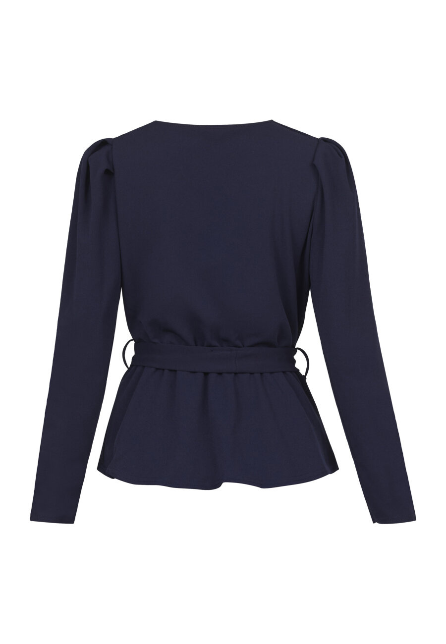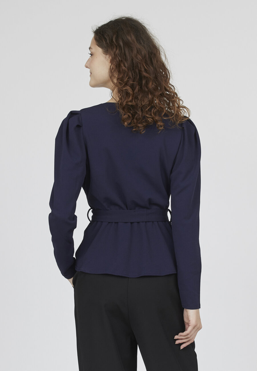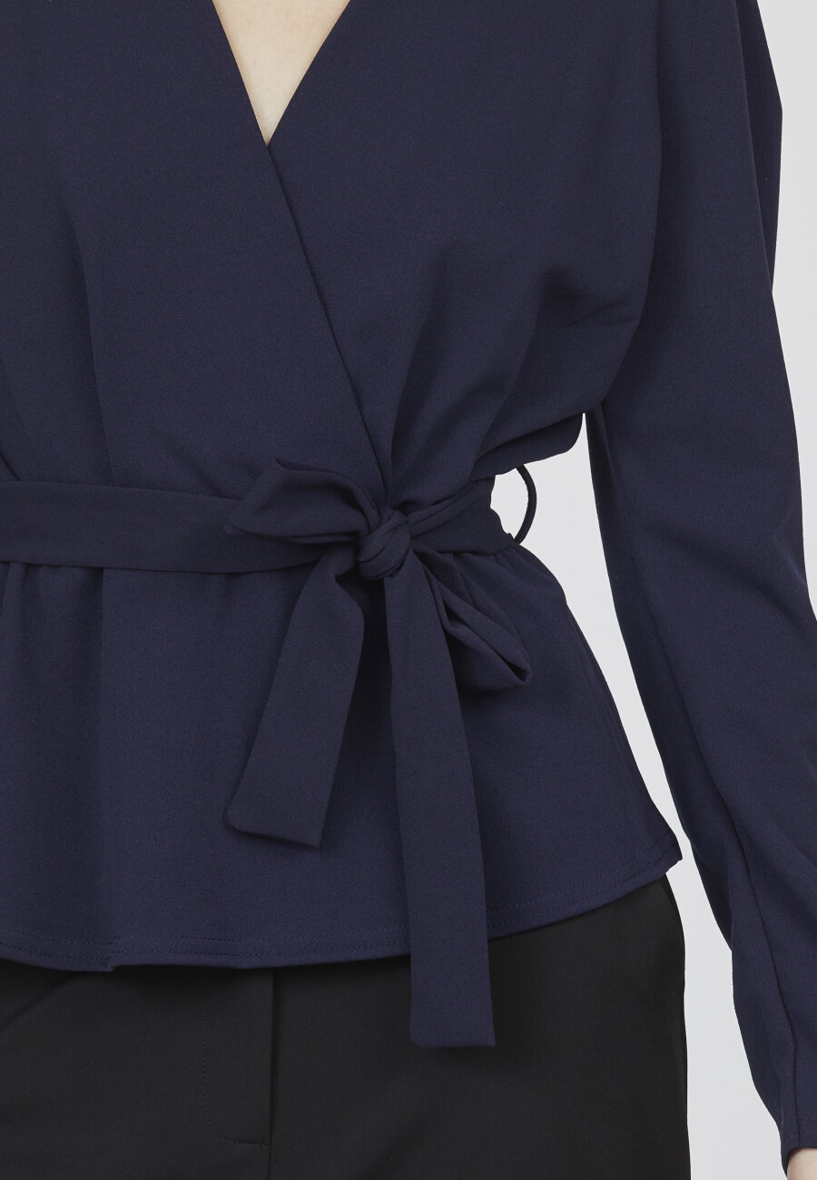 NASA-LS is a feminine plain shirt with a deep v-neck and a belt at the waist.