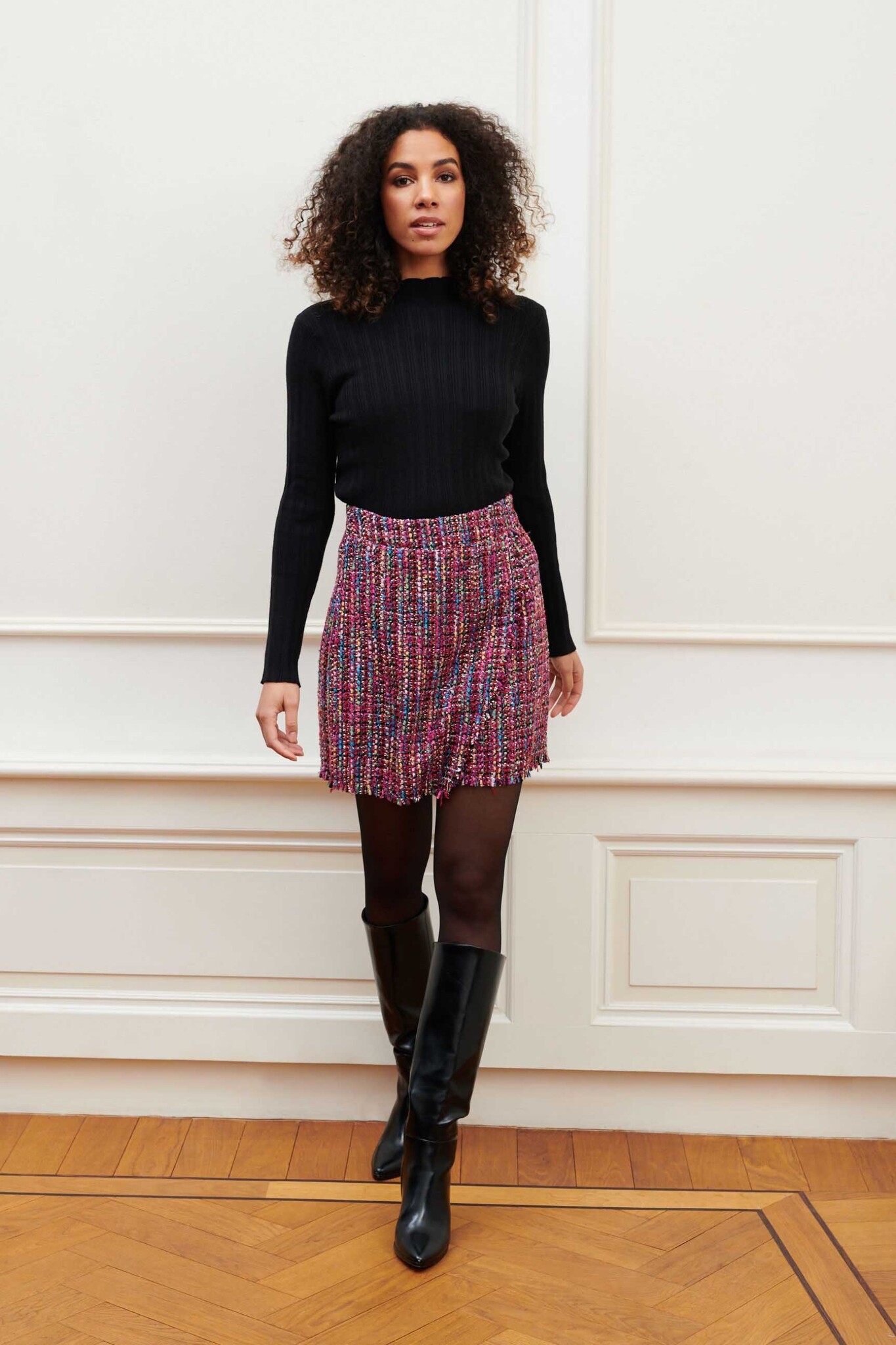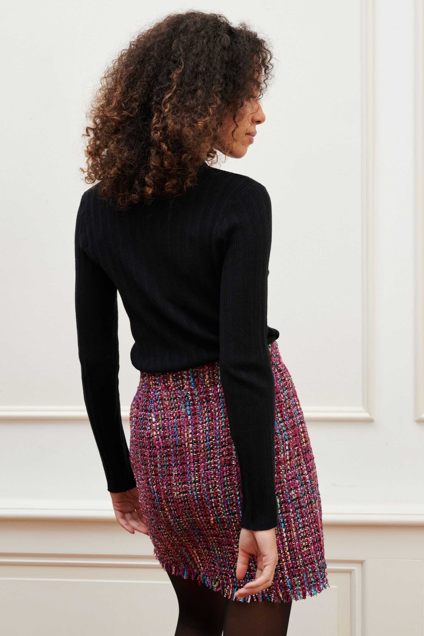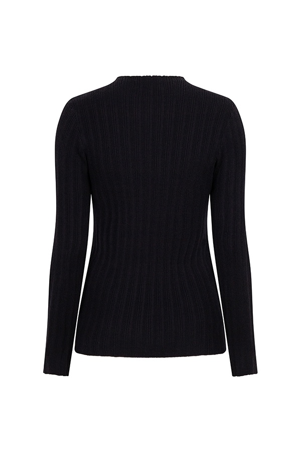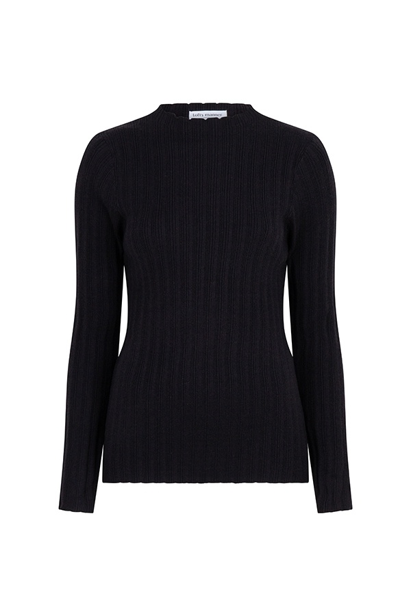 Trui Emily is een zwarte trui met een aangesloten hals die iets lager is dan een turtleneck. De trui is een top die qua fit aansluitend, maar wel erg stretchy is.