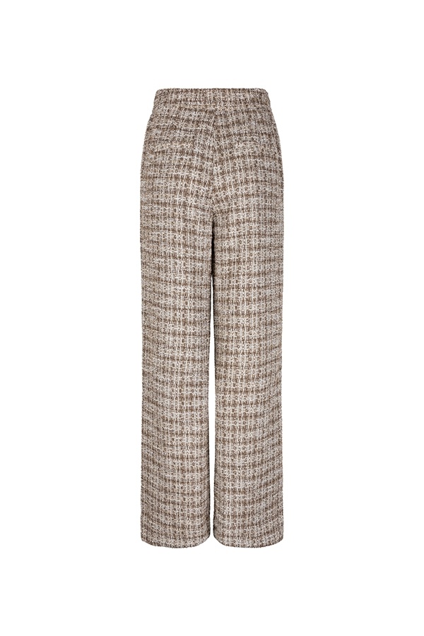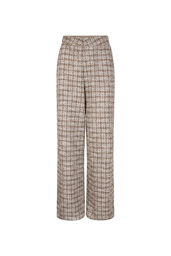 Glinstering dankzij de lurexdetails. De broek heeft steekzakken aan de zijkant en sierzakken aan de achterkant. Verder heeft de pantalon een hook & eye en ritssluiting. De broek is qua pasvorm rechtvallend.