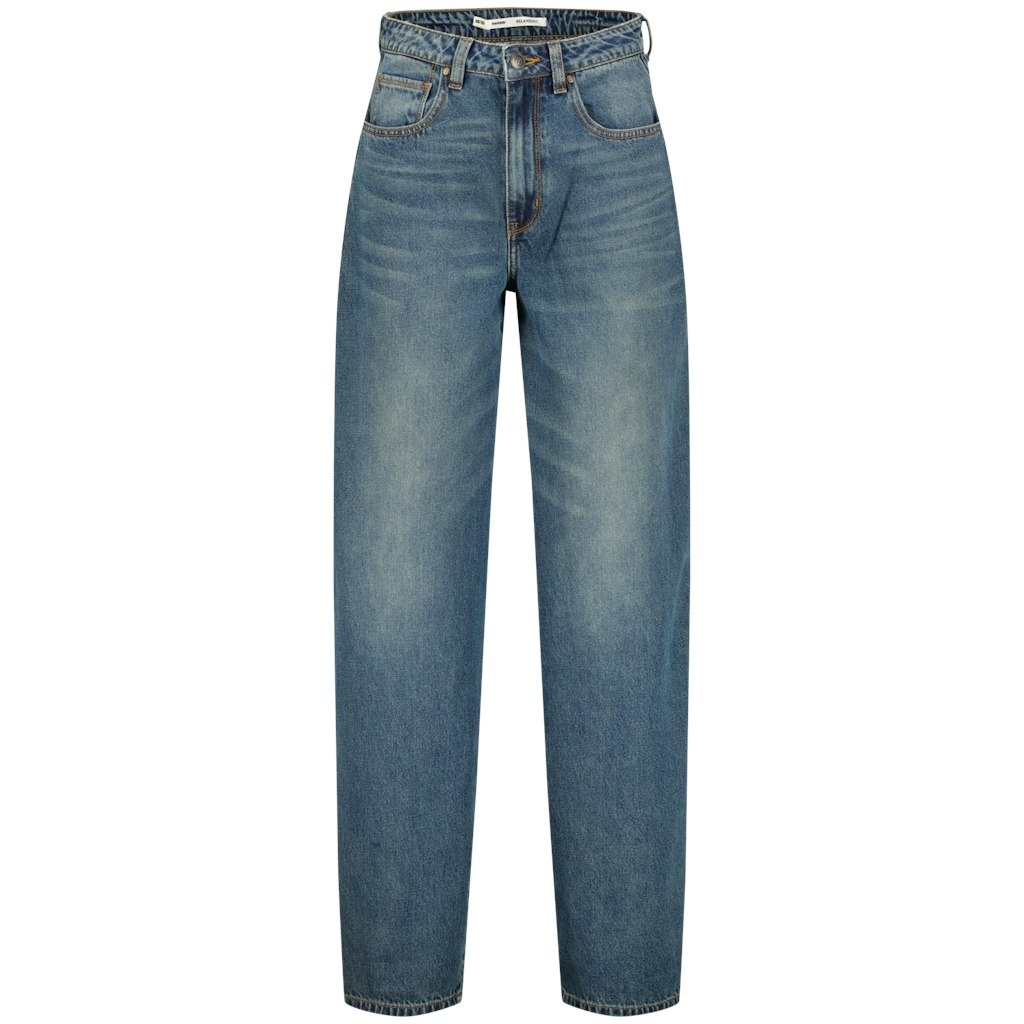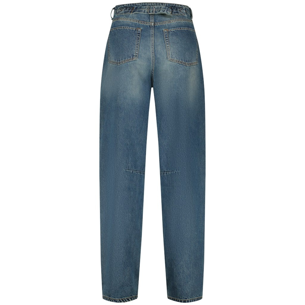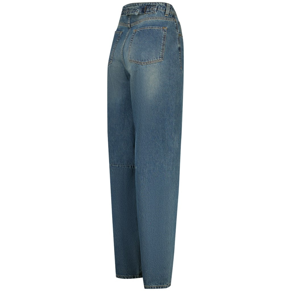 Deze jeans met gave wassing en coole details kun je niet aan je voorbij laten gaan. De jeans is van 100% katoen en kan versteld worden bij de taille.