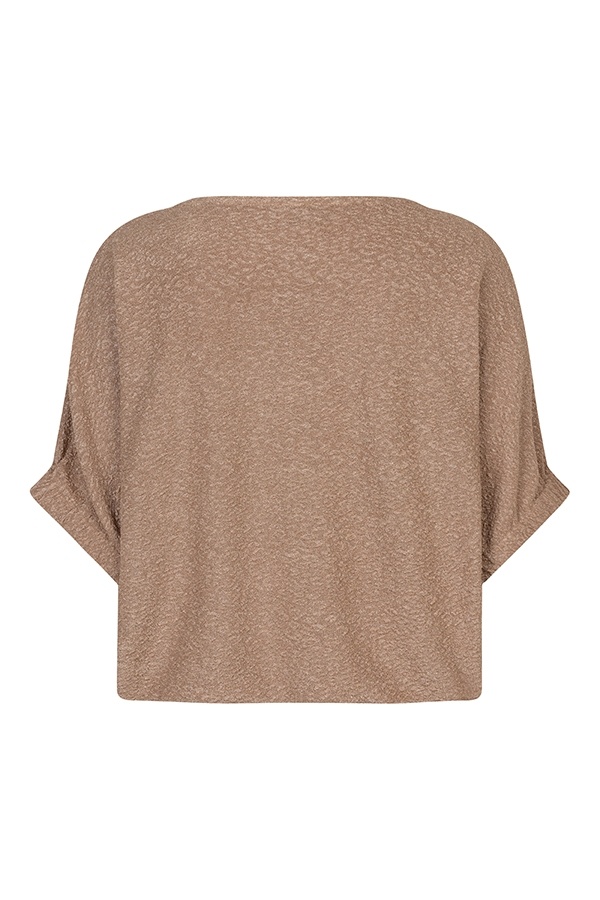 Top Mellie is een gouden top met een oversized fit en een subtiele glans. De V-hals en aangeknipte mouwen zorgen voor een casual look. Dankzij het elastiek in de taille krijgt de top vorm en blijft hij comfortabel dragen.