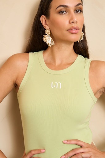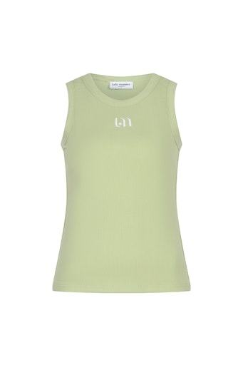 Top Saela is een mintkleurige top met een aangesloten pasvorm en racer model. Het geborduurde artwork op de borst geeft een subtiel detail. De stof rekt mee en zit prettig. Leuk te combineren onder een jasje.