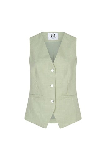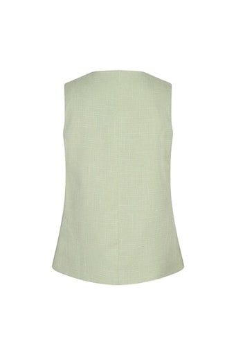 Gilet Shirin is een mintkleurig gilet met een aangesloten fit en korte lengte. De knopen en V-hals geven een nette uitstraling. Mooi om los te dragen of over een top voor een gelaagde look.