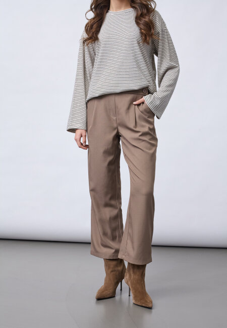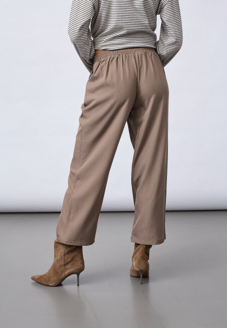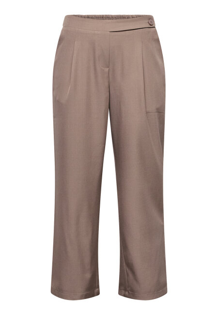 VIKSA-PA.CROP is a culotte pant, with a tailored look and modern comfort. The design includes pleats at the front, practical side pockets and a decorative button detail at the waist. The model is wearing a size S and is 175 cm tall.