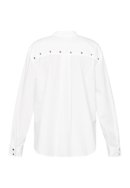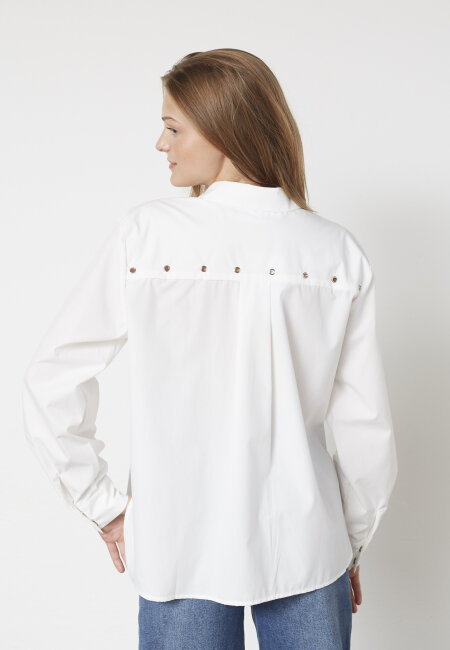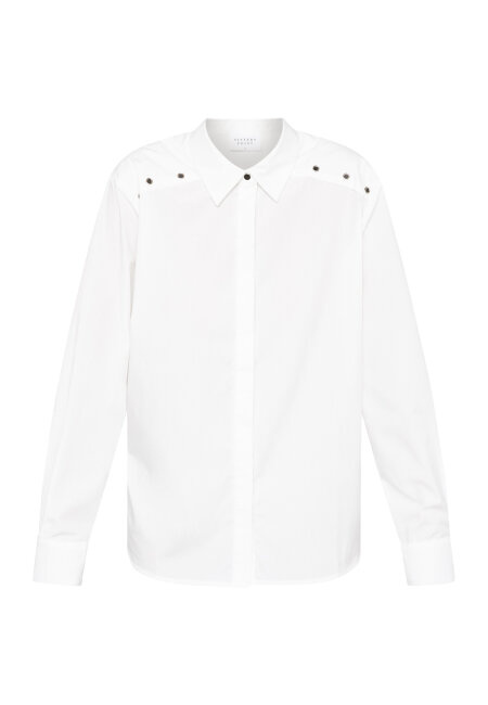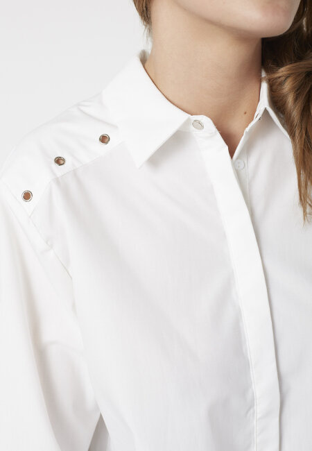 VITER-SH is a classic shirt with unique gold buttons on the shoulders for a sophisticated look. The model wears size S.